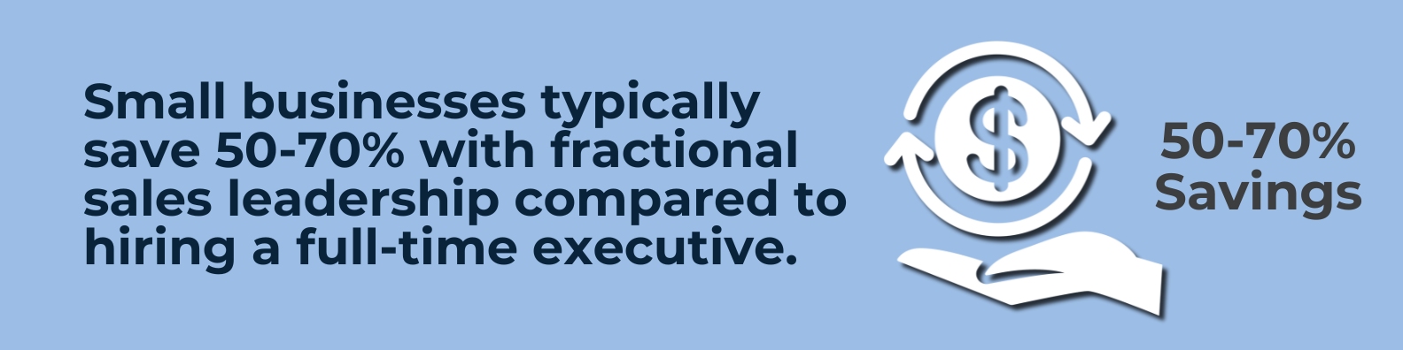 By engaging a fractional sales leader, small businesses can access top-tier talent at a fraction of the cost, typically saving 50-70% compared to hiring a full-time executive.